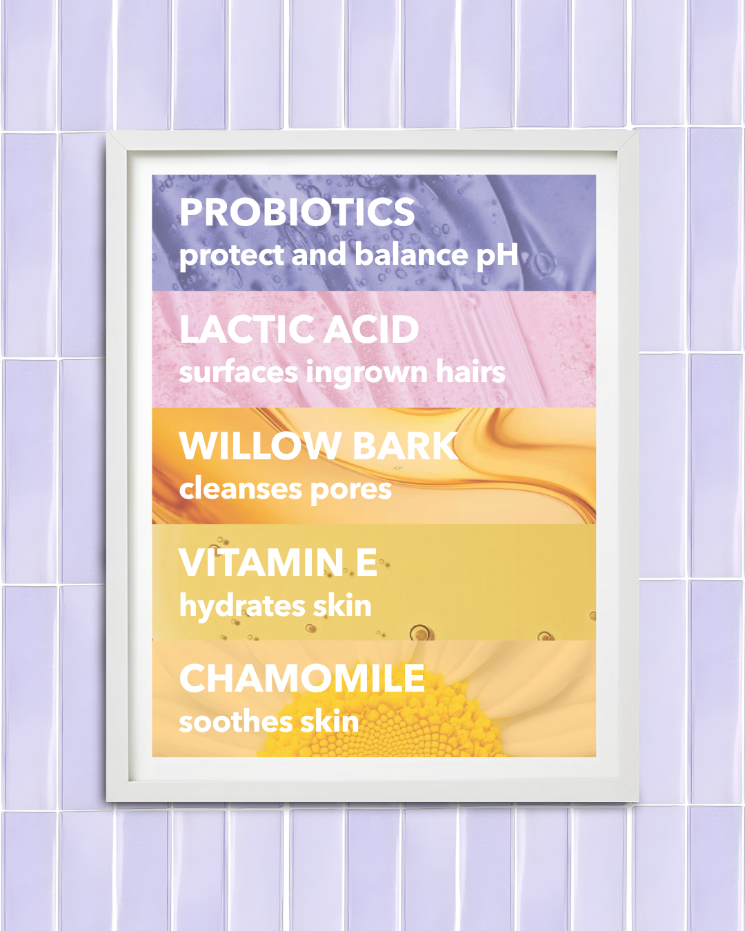 - WHAT'S SPECIAL: It’s tough on ingrowns, yet gentle on your skin. Keeps your skin hydrated and pH balanced with probiotics.